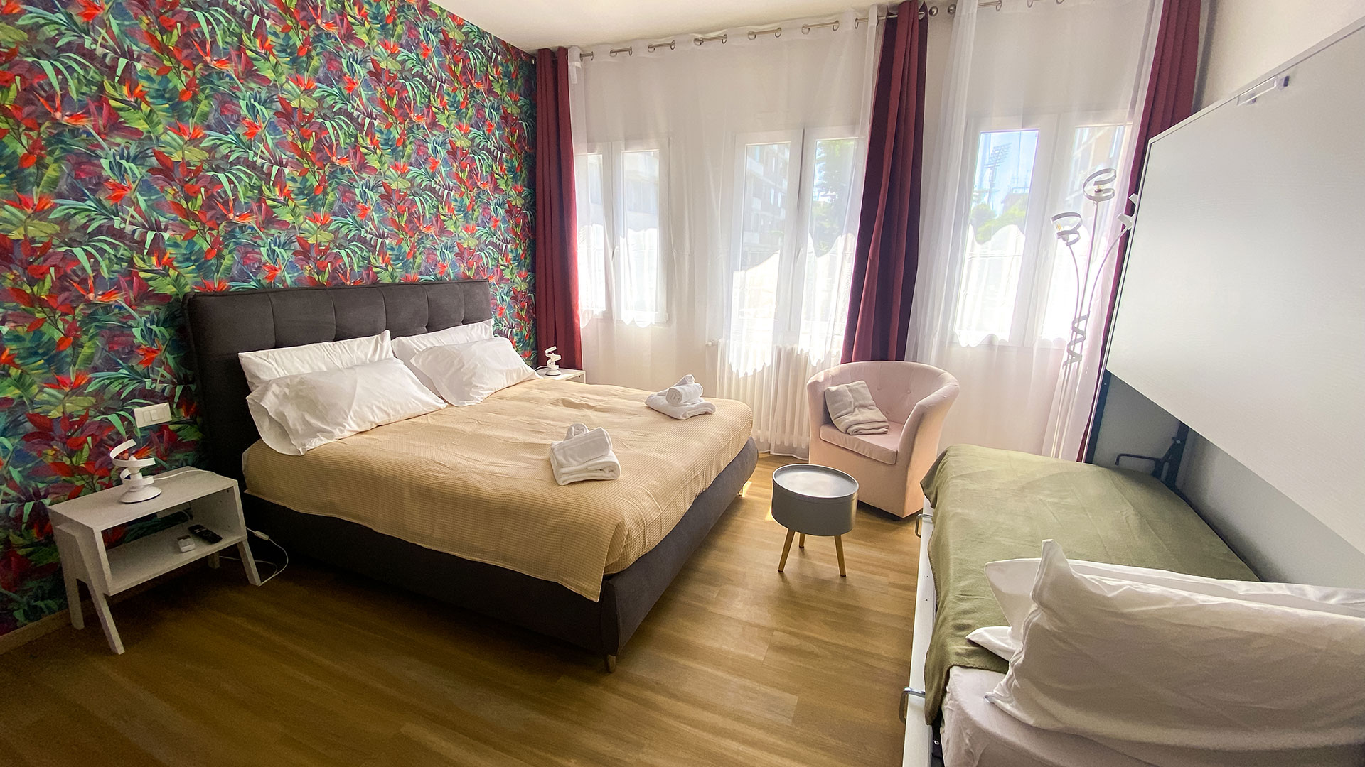 La Platform 2 è una camera dal gusto eclettico che può ospitare fino a 4 adulti. È dotata di un letto matrimoniale e un letto a castello richiudibile e offre tutti i confort necessari per rendere unico il vostro soggiorno a Ferrara.